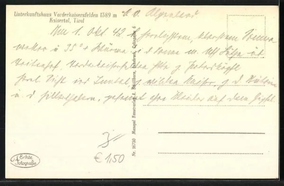 AK Vorderkaisersfeldern, Unterkunftshaus im Kaisertal mit Gipfelpanorama