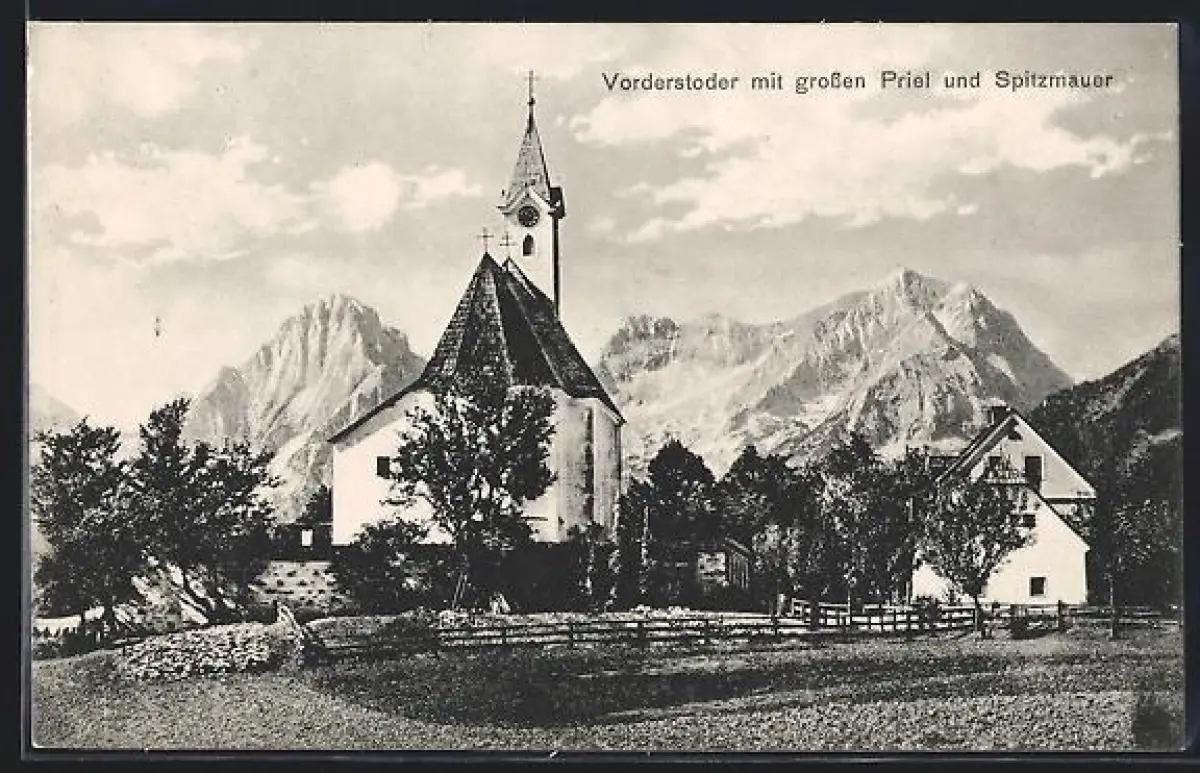 AK Vorderstoder, Kirche mit Grossen Priel und Spitzmauer