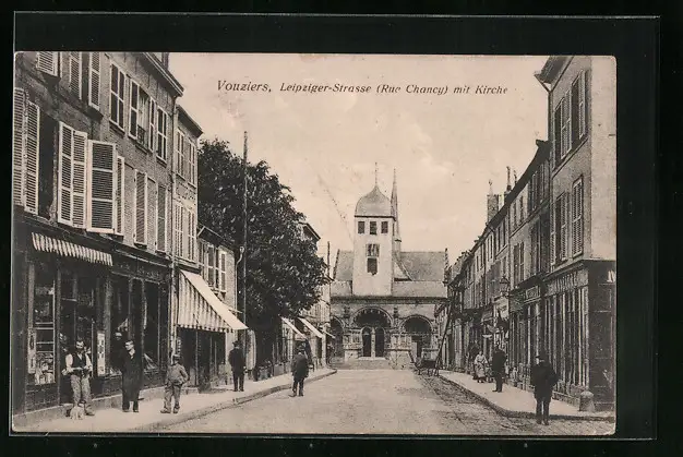 AK Vouziers, Leipziger-Strasse mit Kirche