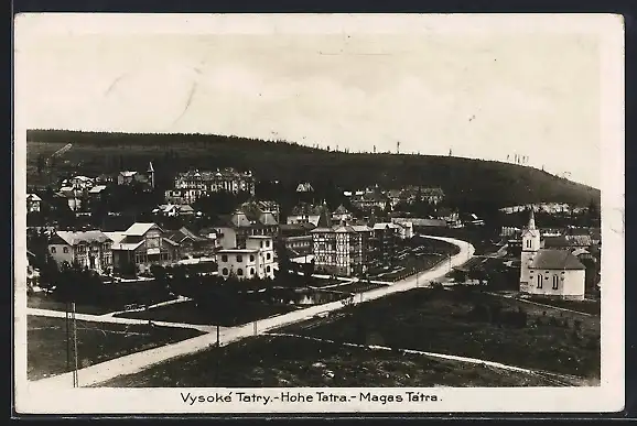 AK Vysoké Tatry /Magas Tátra, Ortsansicht mit kleiner Kirche