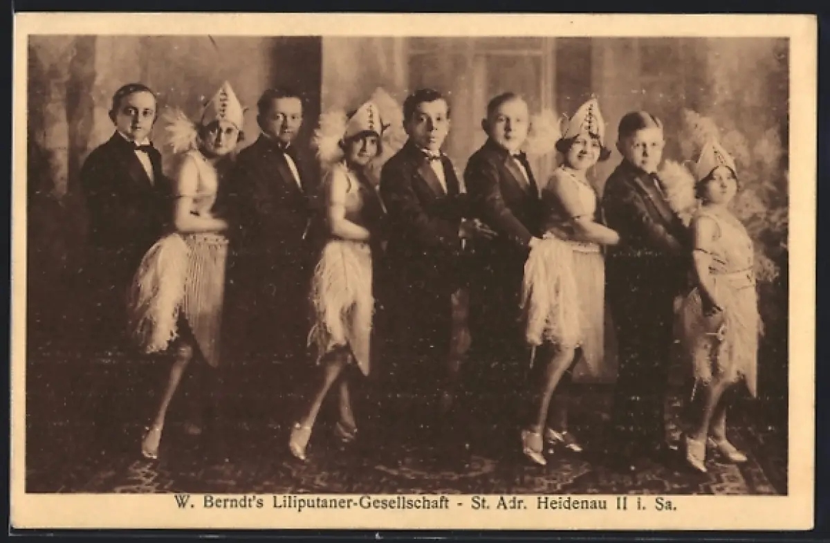 AK W. Berndt`s Liliputaner-Gesellschaft in festlicher Abendgarderobe