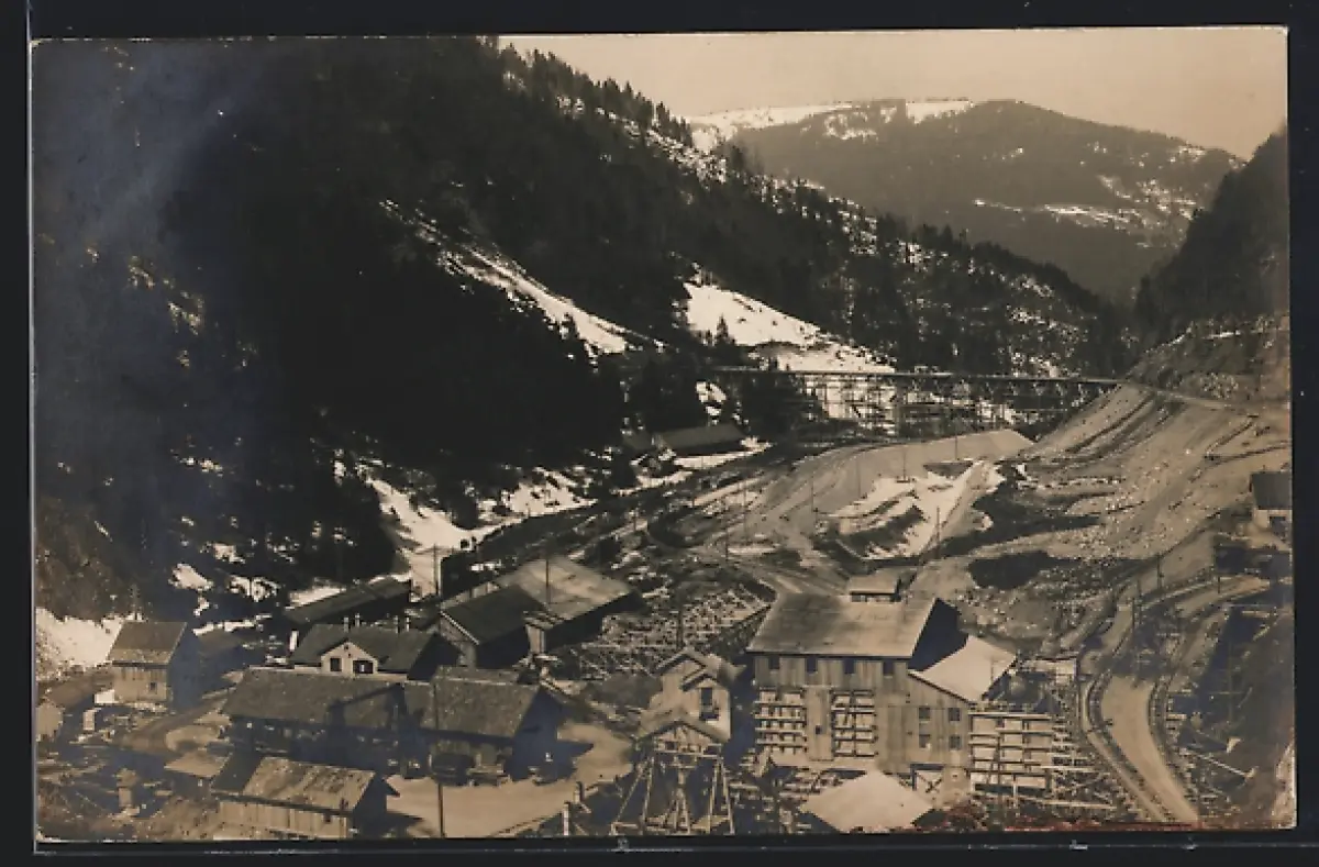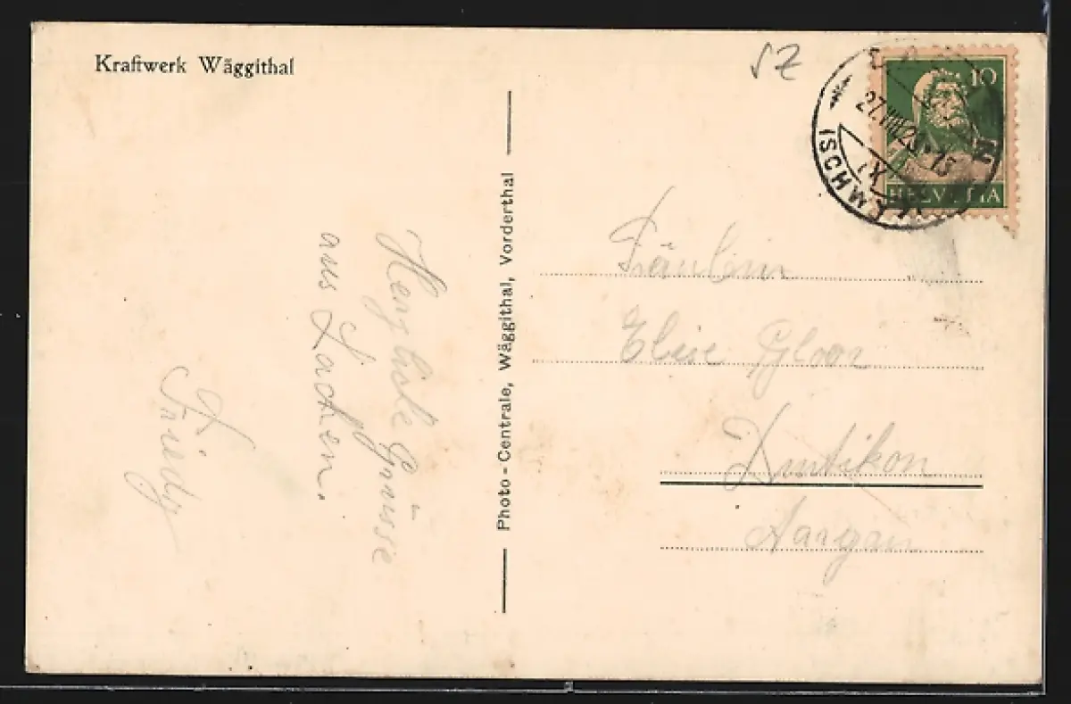 AK Wäggithal, Kraftwerk Wäggithal mit Gebäuden aus der Vogelschau, Winteransicht