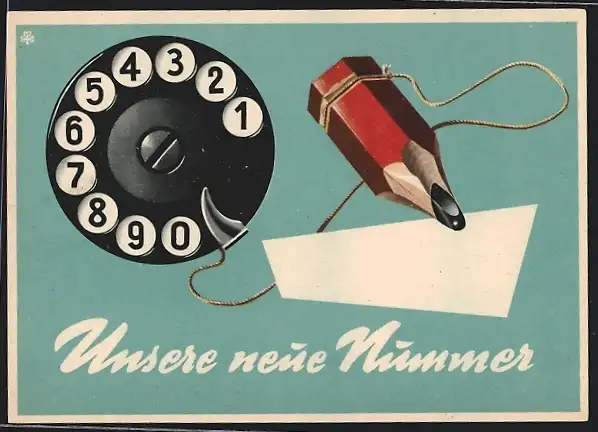 AK Wählscheibe mit Bleistift, Unsere neue Nummer