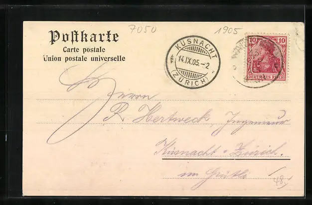 gelaufen 1905, Eckknick oben li., guter Zustand