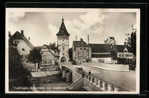 AK Waiblingen, Remsbrücke mit Beinsteiner Tor