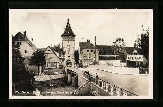 AK Waiblingen, Remsbrücke mit Bernsteiner Tor