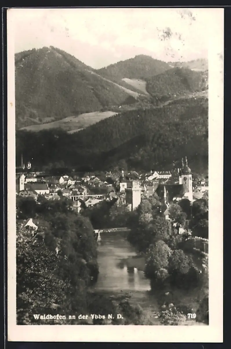 AK Waidhofen an der Ybbs, Teilansicht mit Kirche
