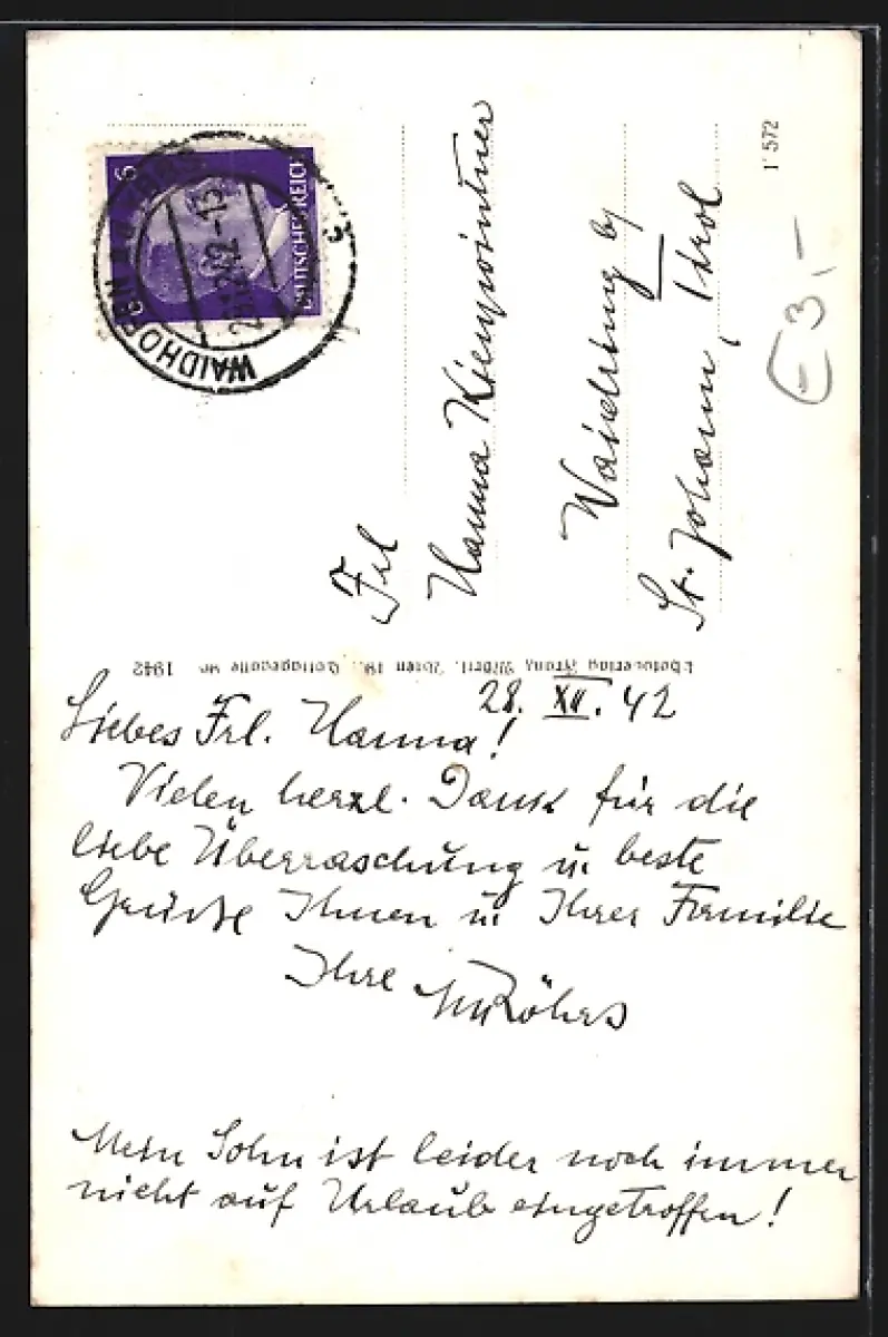 alte Ansichtskarte, gelaufen 1942, Stempelspur, guter Zustand