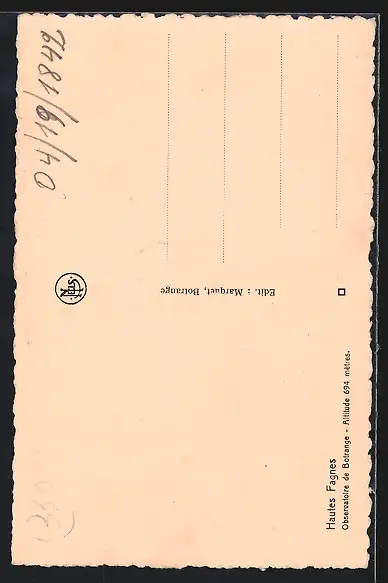Personenbezogene Daten auf der Rückseite der Karte wurden durch blauen Textmarker unkenntlich gemacht. Die blauen Stellen sind auf die Vorderseite durchgeweicht und wirken sich negativ auf das Postkartenfoto aus