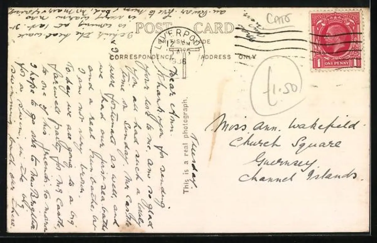 alte Ansichtskarte, gelaufen 1936, Eckknick oben li., guter Zustand