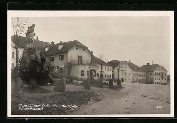 AK Waizenkirchen /O.D., platz mit Tabakgeschäft und Kriegerdenkmal