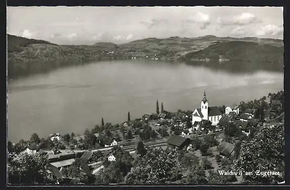 AK Walchwil /Zugersee, Ortsansicht mit Seeblick und Gasthof z. Sternen aus der Vogelschau