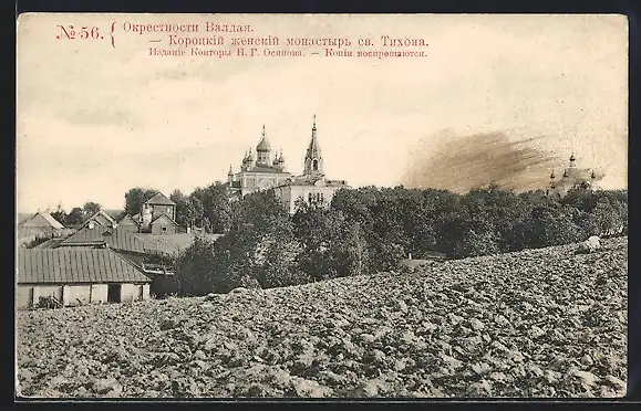 AK Waldai, Korotschinskij Damenkloster von St. Tikhon, Ansicht über das Feld