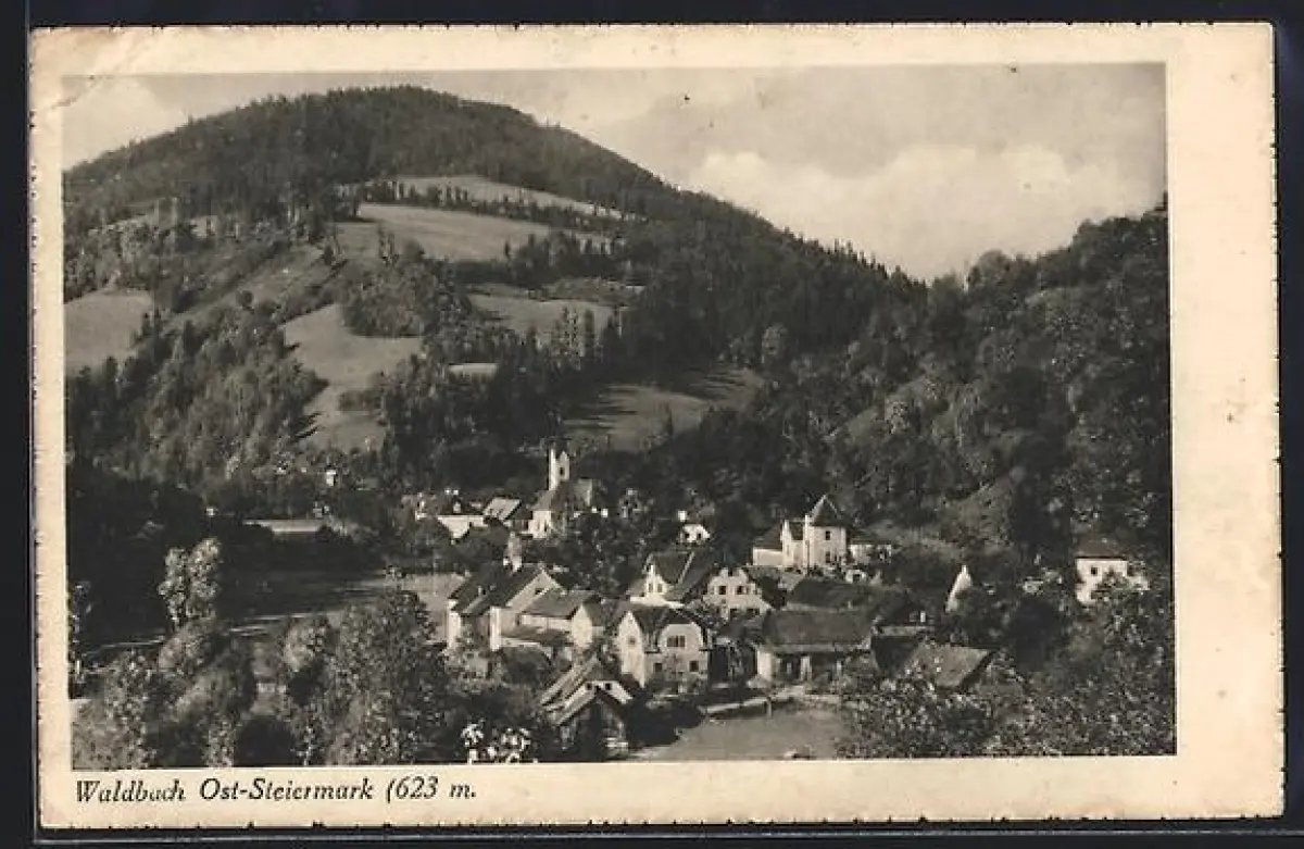 AK Waldbach /Ost-Steiermark, Panorama mit Kirche