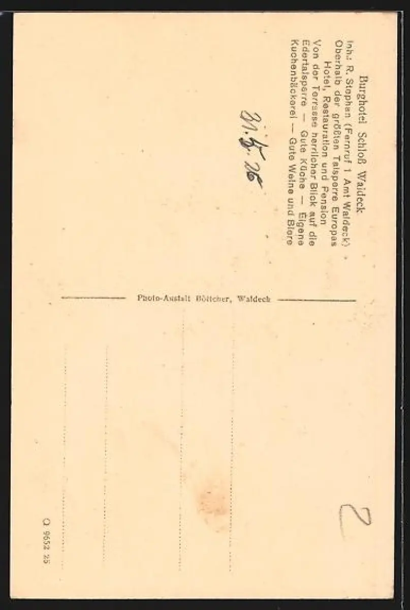 AK Waldeck / Hessen, Hotel Schloss Waldeck, Inh. R. Stephan
