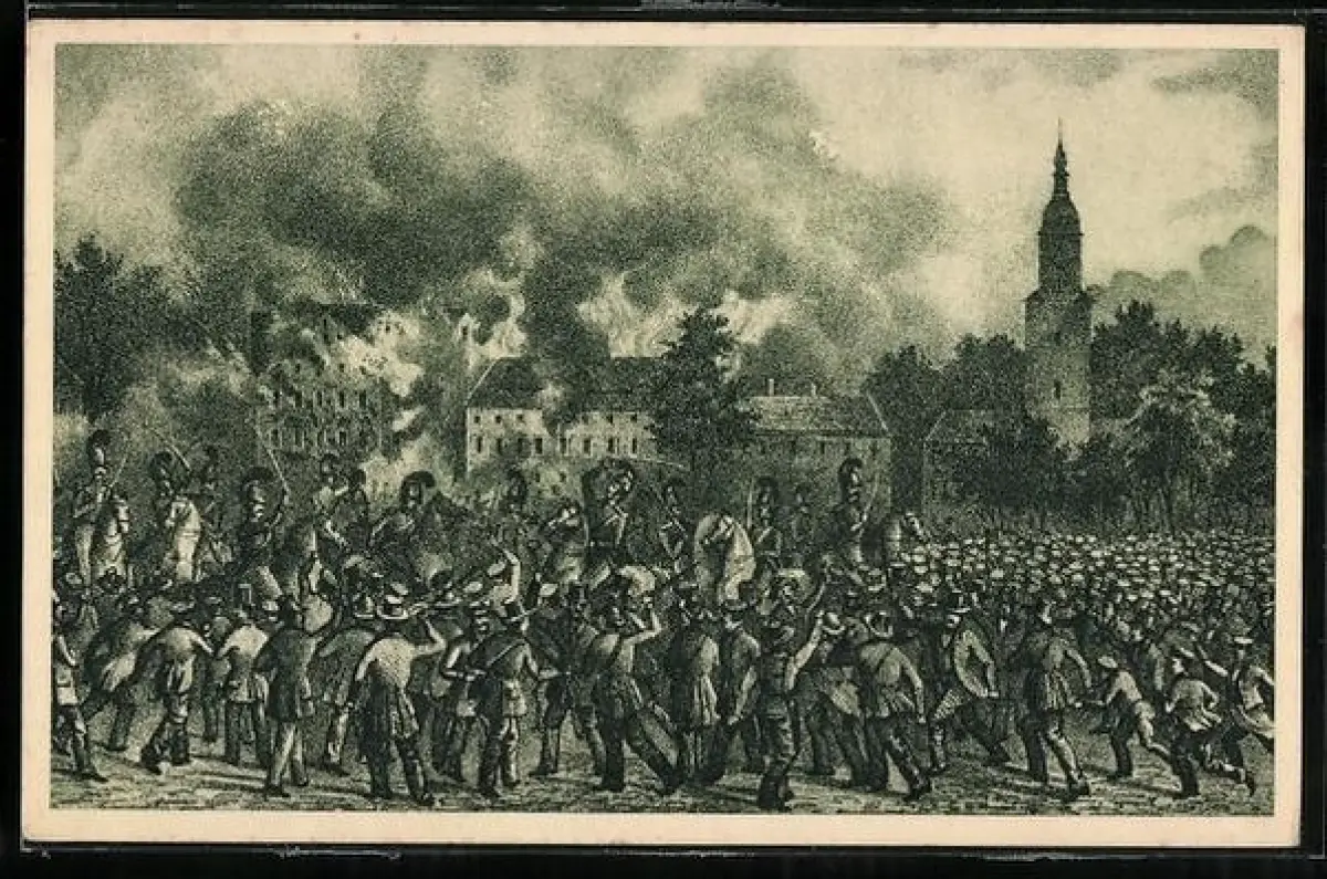 AK Waldenburg, Revolution 1848, Arbeitern, Handwerkern & Bauern stürmen das fürstliche Schloss