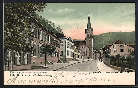 AK Waldenburg, Strassenpartie mit Kirche