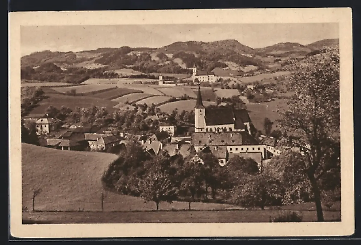 AK Waldhausen im Strudengau, Ortspartie mit Schlossberg