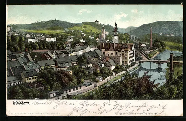 AK Waldheim, Totalansicht mit Flusspartie
