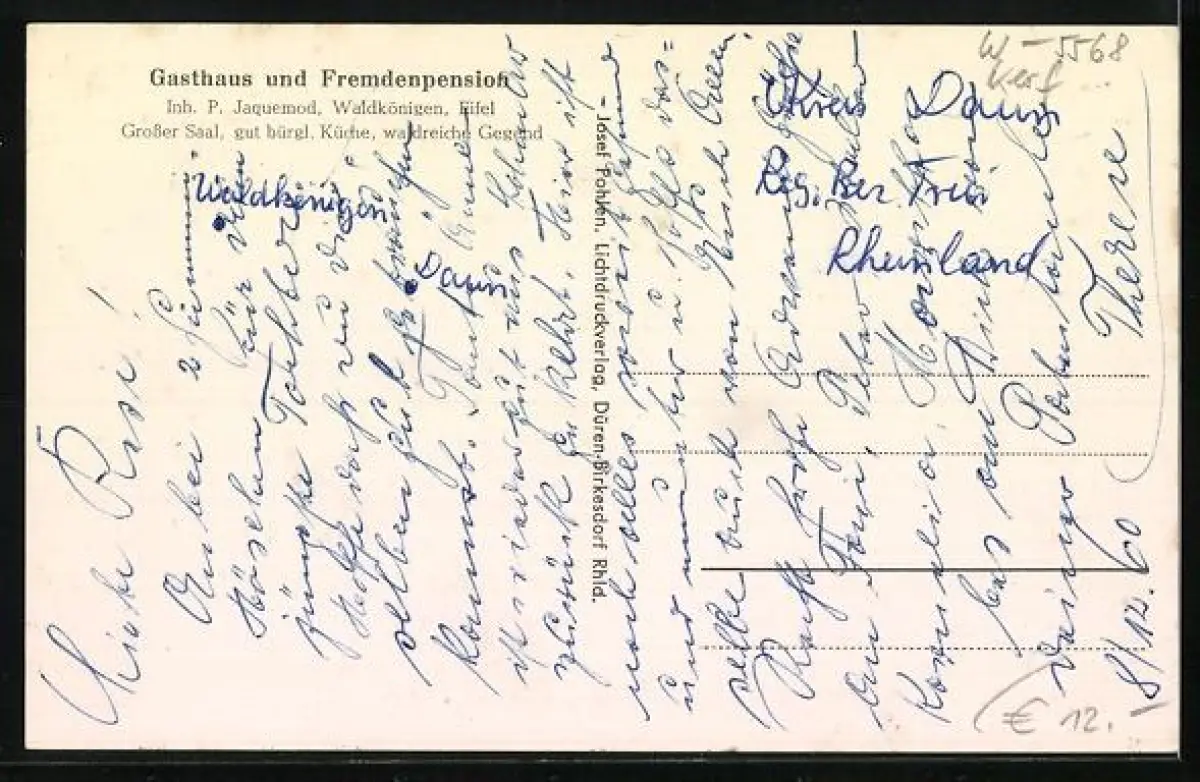 AK Waldkönigen, Gasthaus und Pension Jaquemod, Ortsansicht