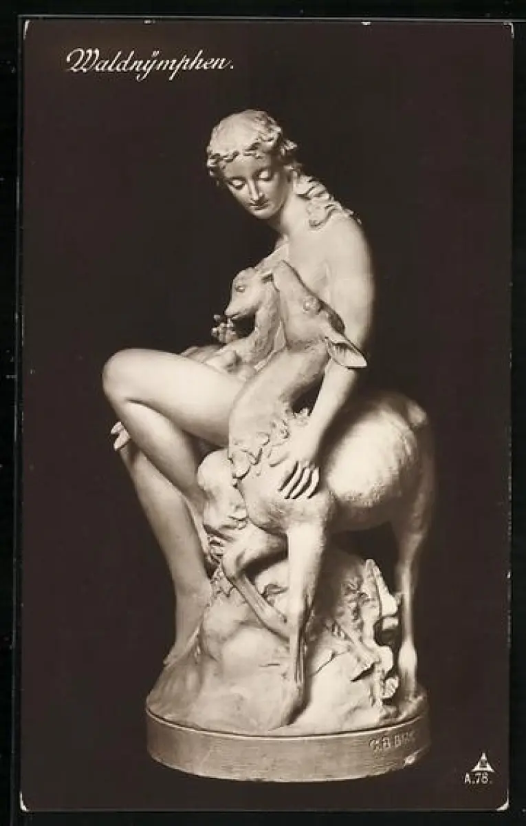 AK Waldnymphe mit zwei Rehen