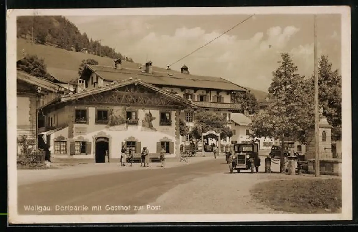 AK Wallgau, Dorfpartie mit Gasthof zur Post