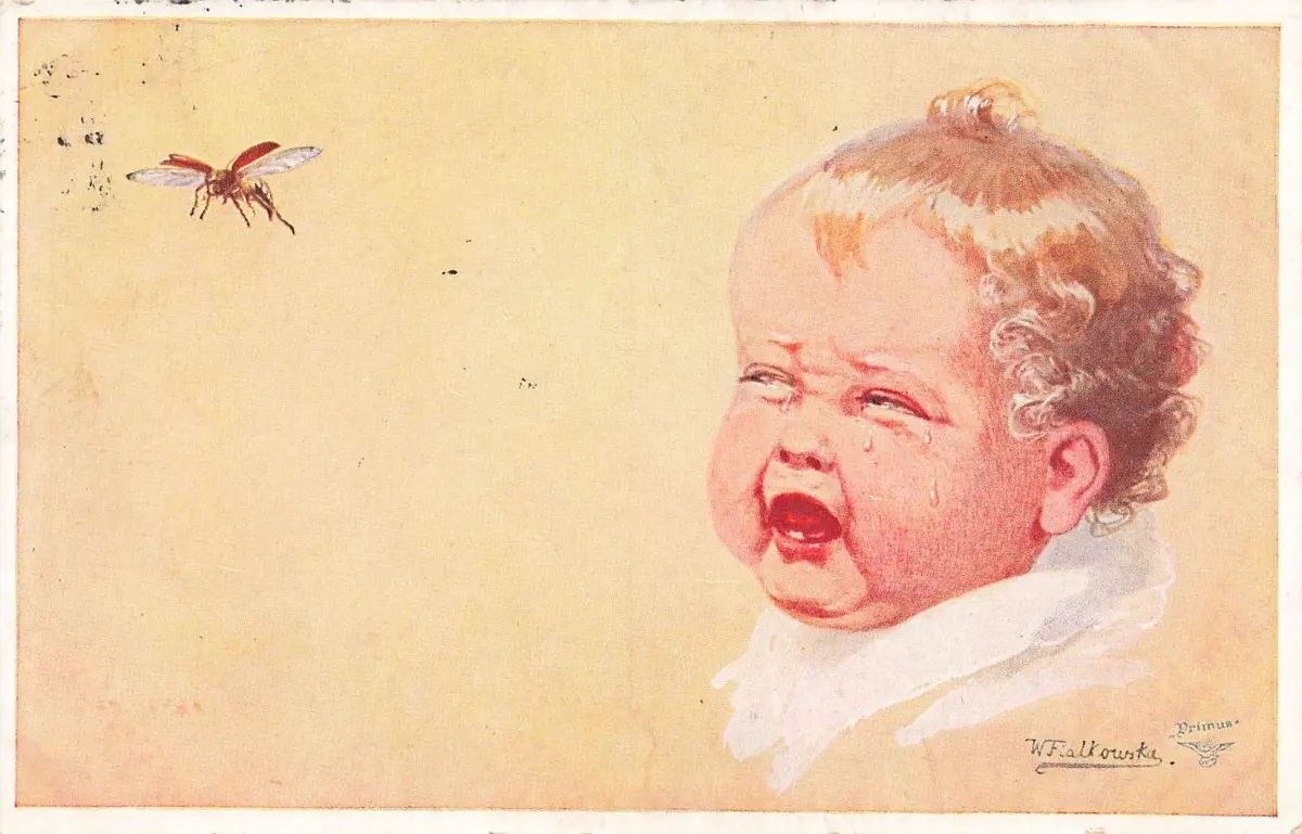 AK Wally Fialkowska weinendes Baby mit Wespe 1928 gelaufen Künstlerkarte