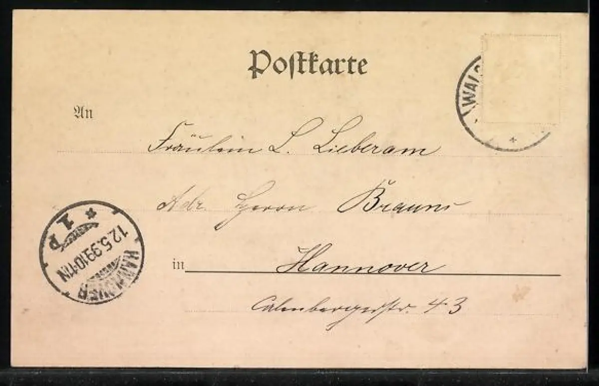 alte Ansichtskarte, gelaufen 1899, Briefmarke entfernt, guter Zustand