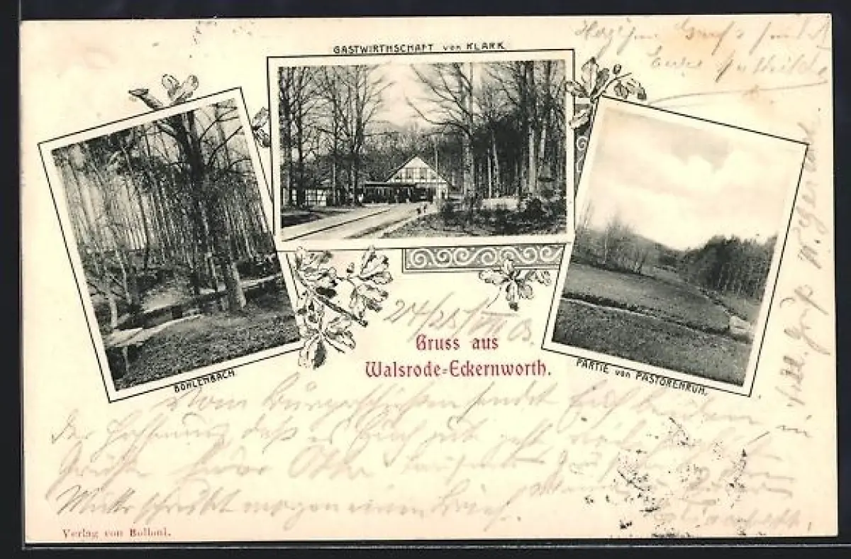 AK Walsrode, Gasthof Eckernworth, Gasthaus von Klark, Partie von Pastorenruh, Bohlenbach