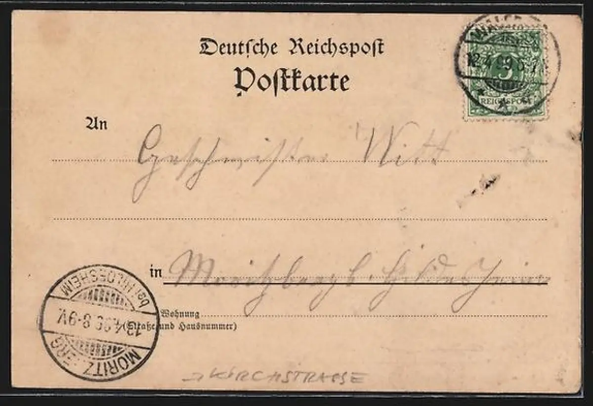 alte Ansichtskarte, gelaufen 1899, Stecknadellöcher li., guter Zustand