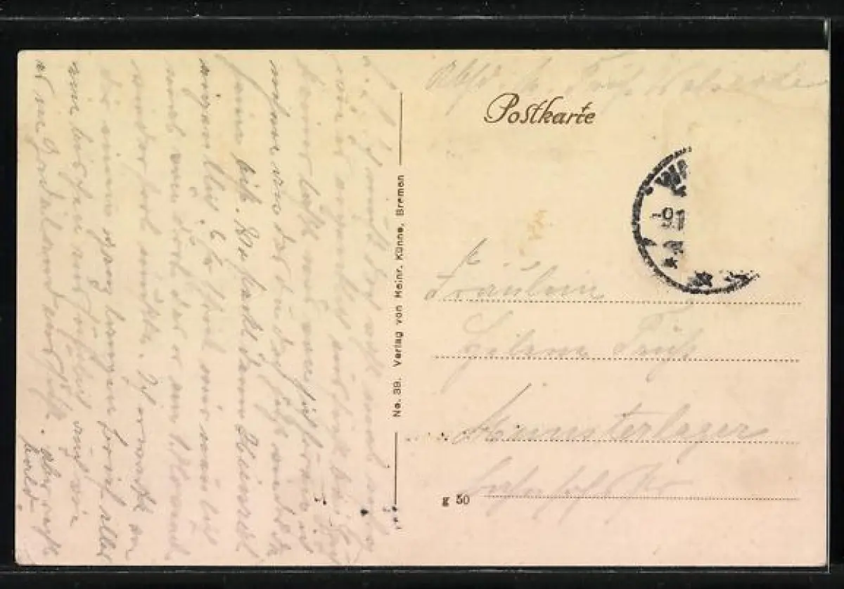 alte Ansichtskarte, gelaufen, Briefmarke entfernt, guter Zustand