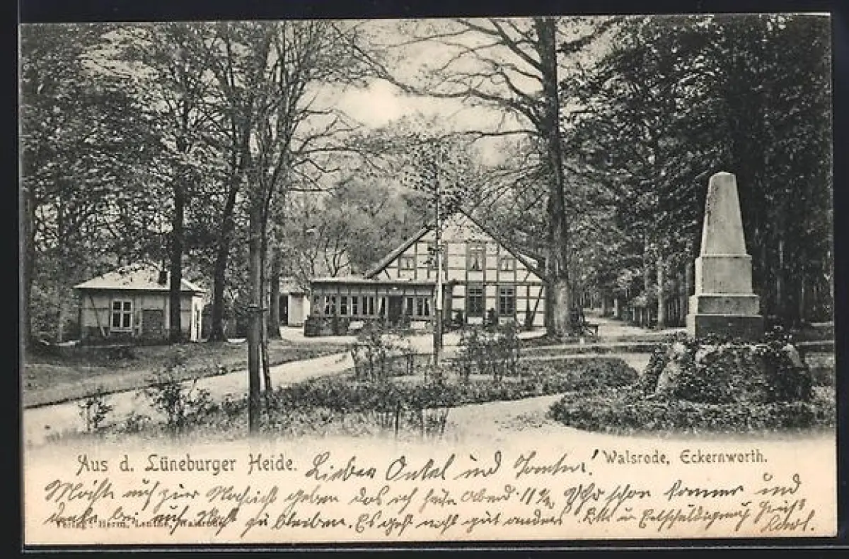 AK Walsrode / Lüneburger Heide, Gasthaus Eckernworth mit Denkmal