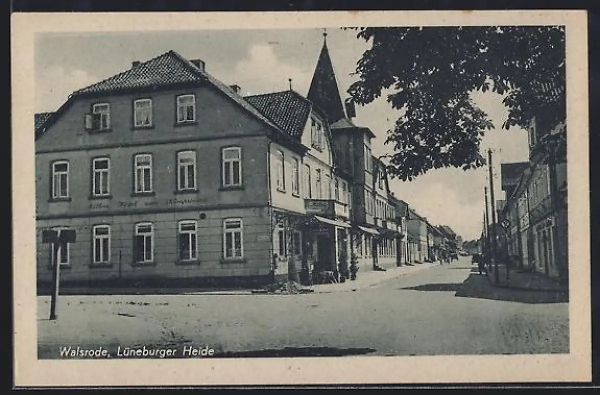 AK Walsrode /Lüneburger Heide, Strassenszene mit Hotel und Kirche
