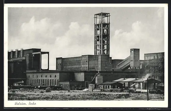 AK Walsum, Zeche mit Förderturm aus der Vogelschau