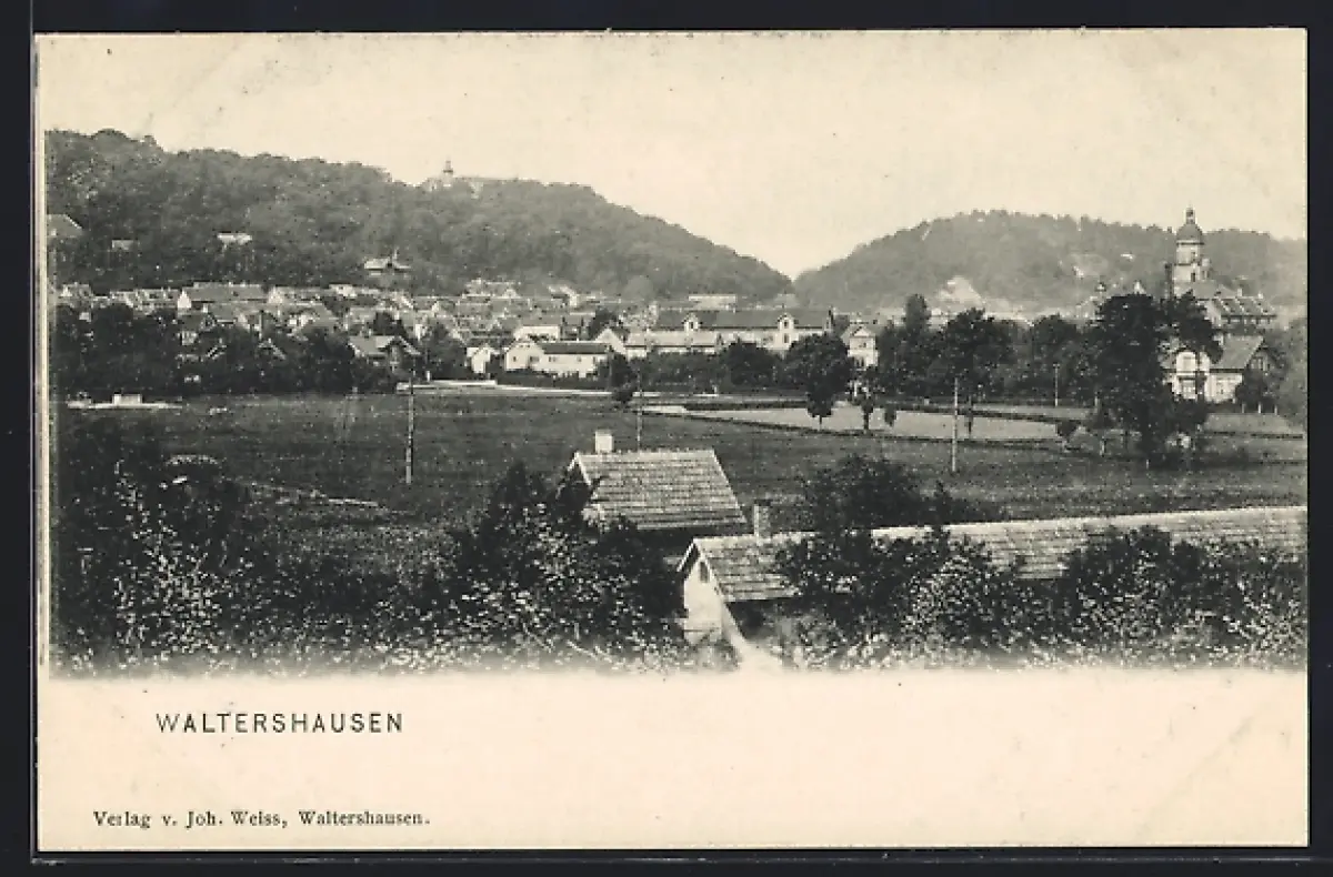 AK Waltershausen / Thüringen, Ortsansicht mit Turmgebäude