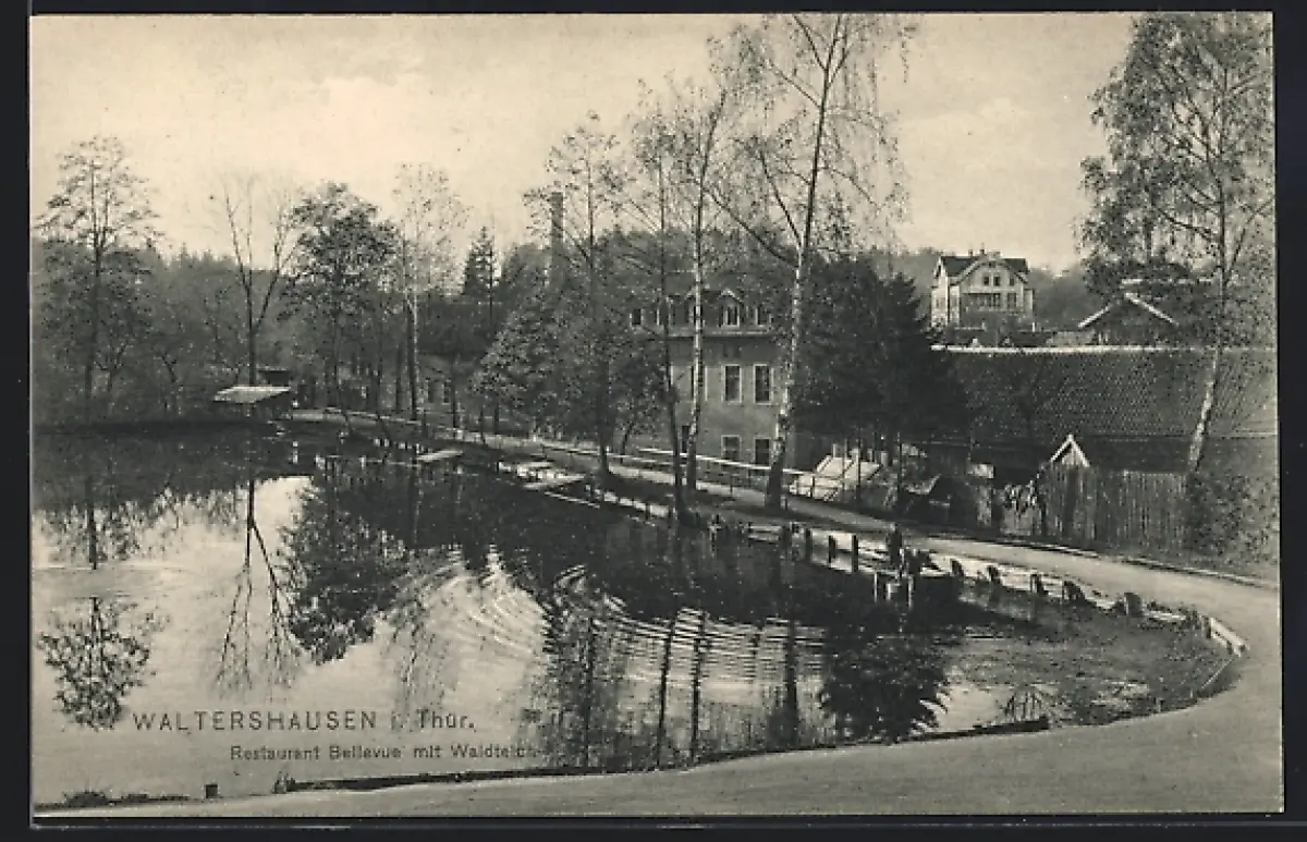AK Waltershausen i. Thür., Restaurant Bellevue mit Waldteich
