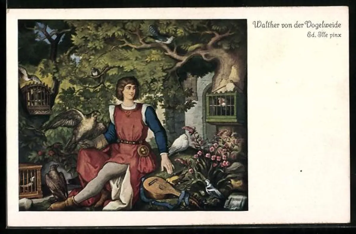 AK Walther von der Vogelweide als junger Mann am Vogelherd