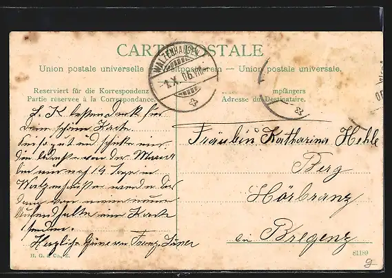alte Ansichtskarte, gelaufen 1906, Briefmarke entfernt, guter Zustand