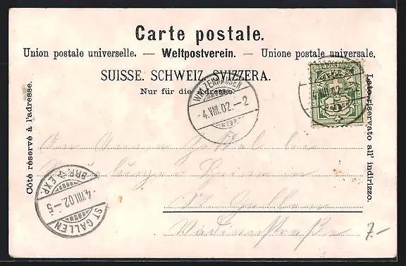 alte Ansichtskarte, gelaufen 1902, Stempelspur, guter Zustand