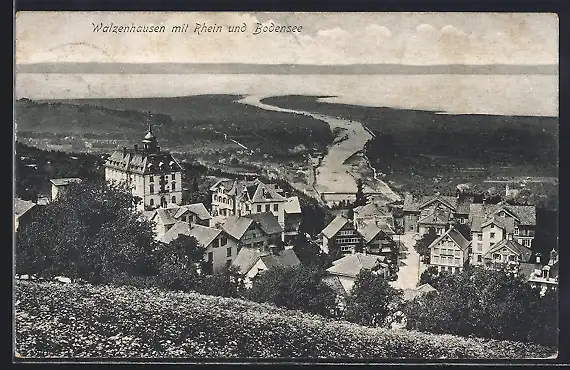 AK Walzenhausen, Teilansicht mit Rhein und Bodensee