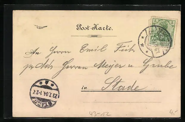 alte Ansichtskarte, gelaufen 1904, guter Zustand