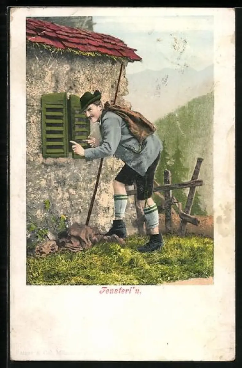 AK Wanderer schielt durch ein Fenster, Fensterl`n