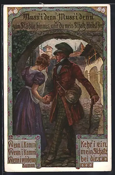 AK Wanderer verlässt seine Liebste und geht auf Reisen