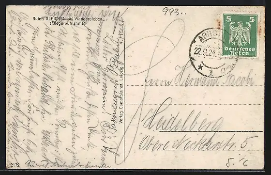 AK Wandersleben, Fliegeraufnahme der Ruine Gleichen