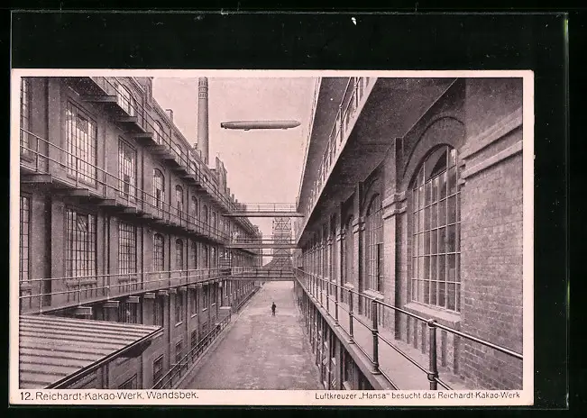 AK Wandsbek, Reichardt-Kakao-Werk, Luftkreuzer Hansa besucht das Werk, Zeppelin
