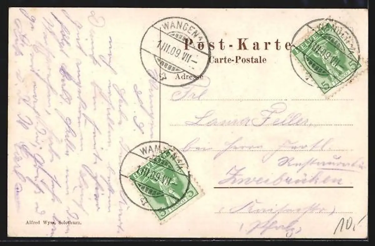 gelaufen 1909, Eckknick re. unten, guter Zustand