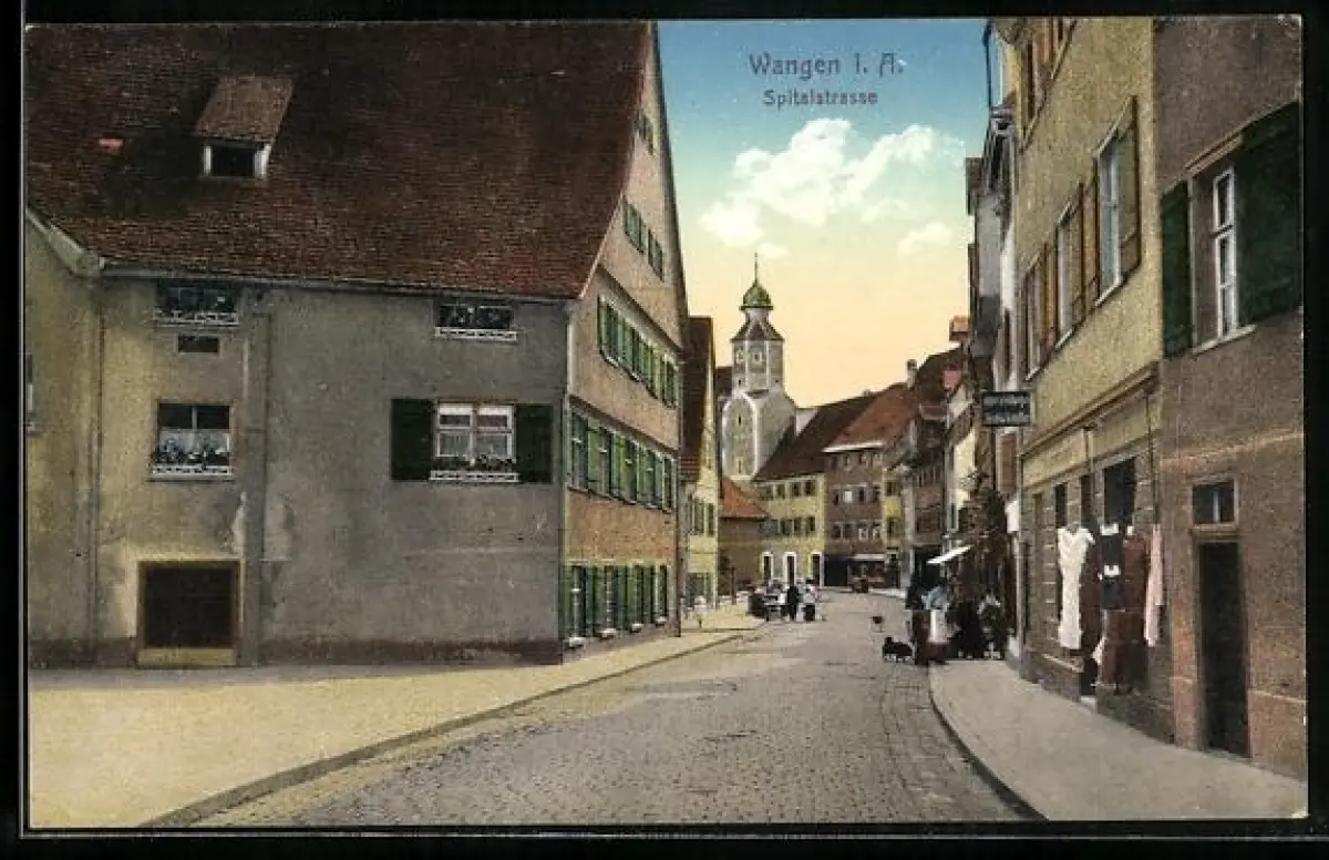 AK Wangen i. A., Spitalstrasse mit Geschäft
