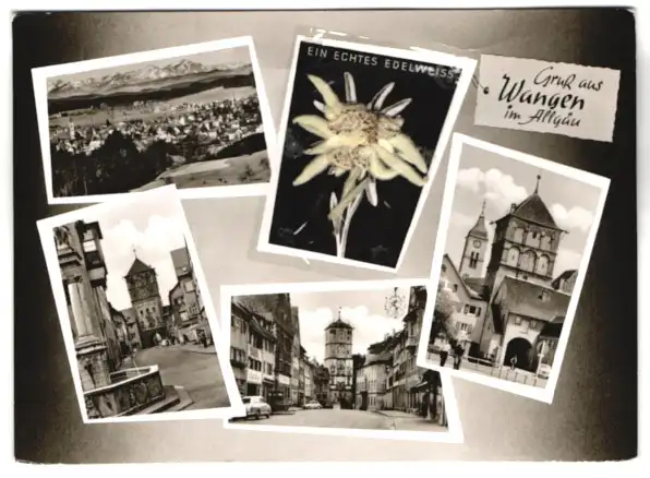 AK Wangen im Allgäu, Ortspartien mit Rathaus, Trockenblume: echtes Edelweiss