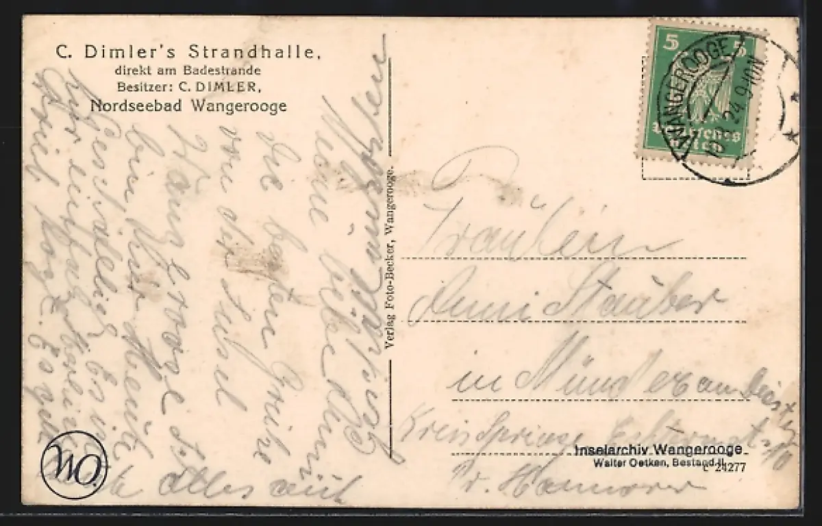AK Wangerooge, Hotel C. Dimler`s Strandhalle, Strandcafé, Badegäste, Nordsee