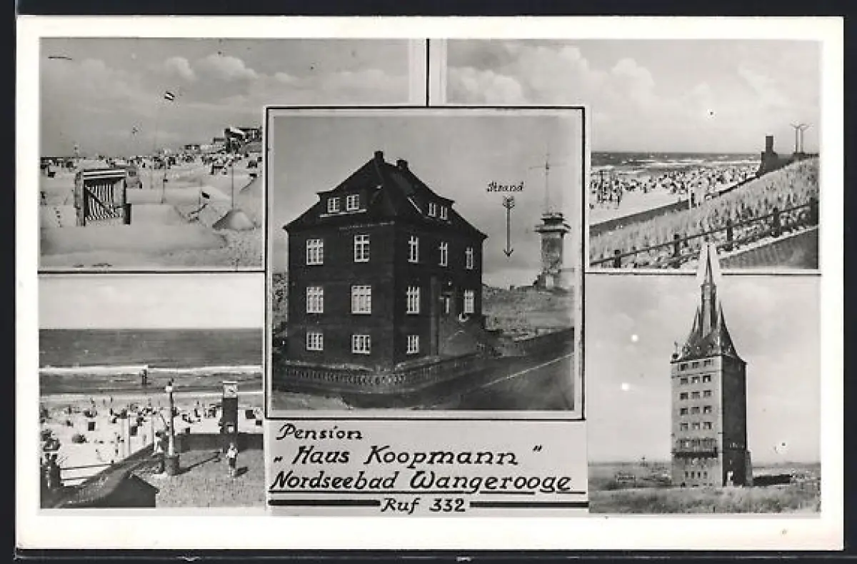 AK Wangerooge, Hotel-Pension Haus Koopmann, Strand, Wasserturm, Nordseebad